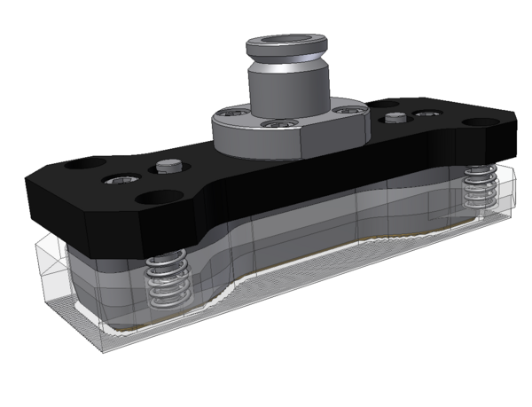 The cutting-die unit „ASTM D412-C“ consists of a cutting blade and spring-loaded down holders. The cutting blade is made of powder-metallurgic knife steel and thereby guarantees an extreme lifetime. The blade is transversally sharpened on both sides, which results in vertical cut lines of an exact specimen cross section.